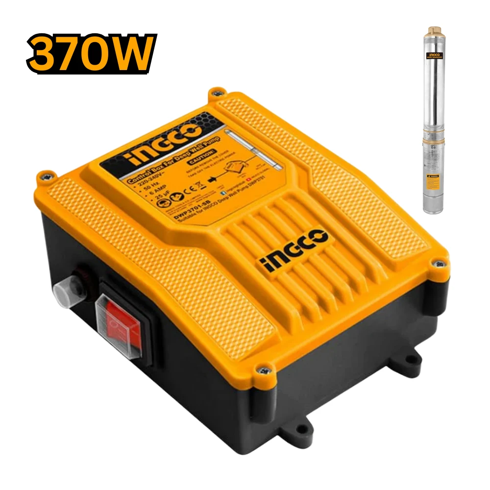 Le boîtier de commande Ingco DWP3701SB est conçu pour les pompes immergées de puits profonds, et plus particulièrement pour les modèles DWP3701 et UDWP3701 . Sa fonction principale est d’abriter les composants électriques nécessaires au fonctionnement et à la protection du moteur de la pompe.
