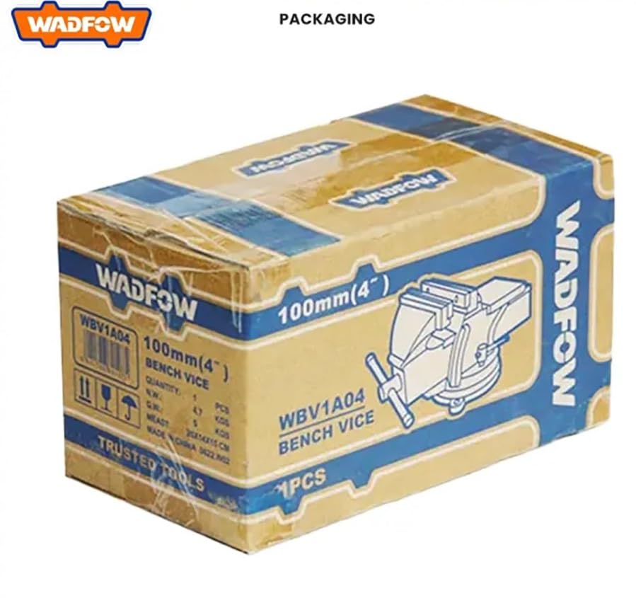 Étau d’établi robuste en fonte de 4 pouces fabriqué par WADFOWIl est conçu pour maintenir en toute sécurité des matériaux pour des tâches telles que la découpe, le perçage et le façonnage dans un atelier ou un garage.