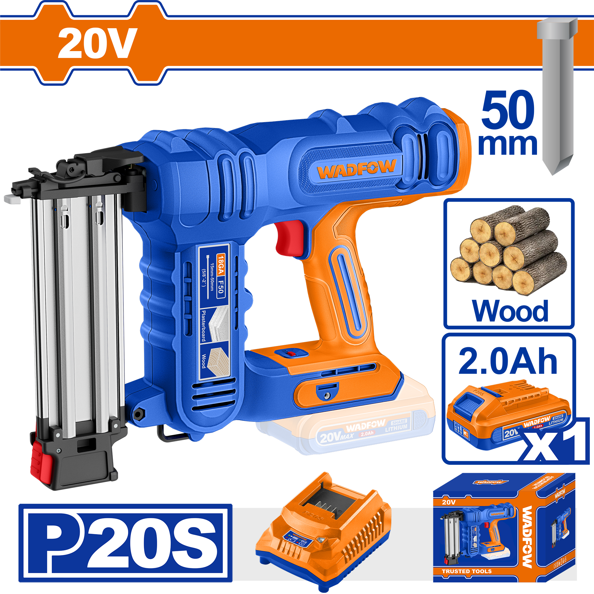 KIT DE CLOUEUR A BOIS-50MMM 20V+1BAT2AH+CHRG WBJ2308
