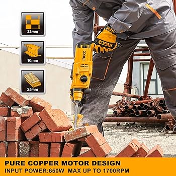 - Perçage simple (mode rotation seule) : En désactivant la fonction de percussion, l’outil peut être utilisé comme une perceuse standard pour percer des trous dans des matériaux plus tendres comme le bois, le métal, la céramique et le plastique.